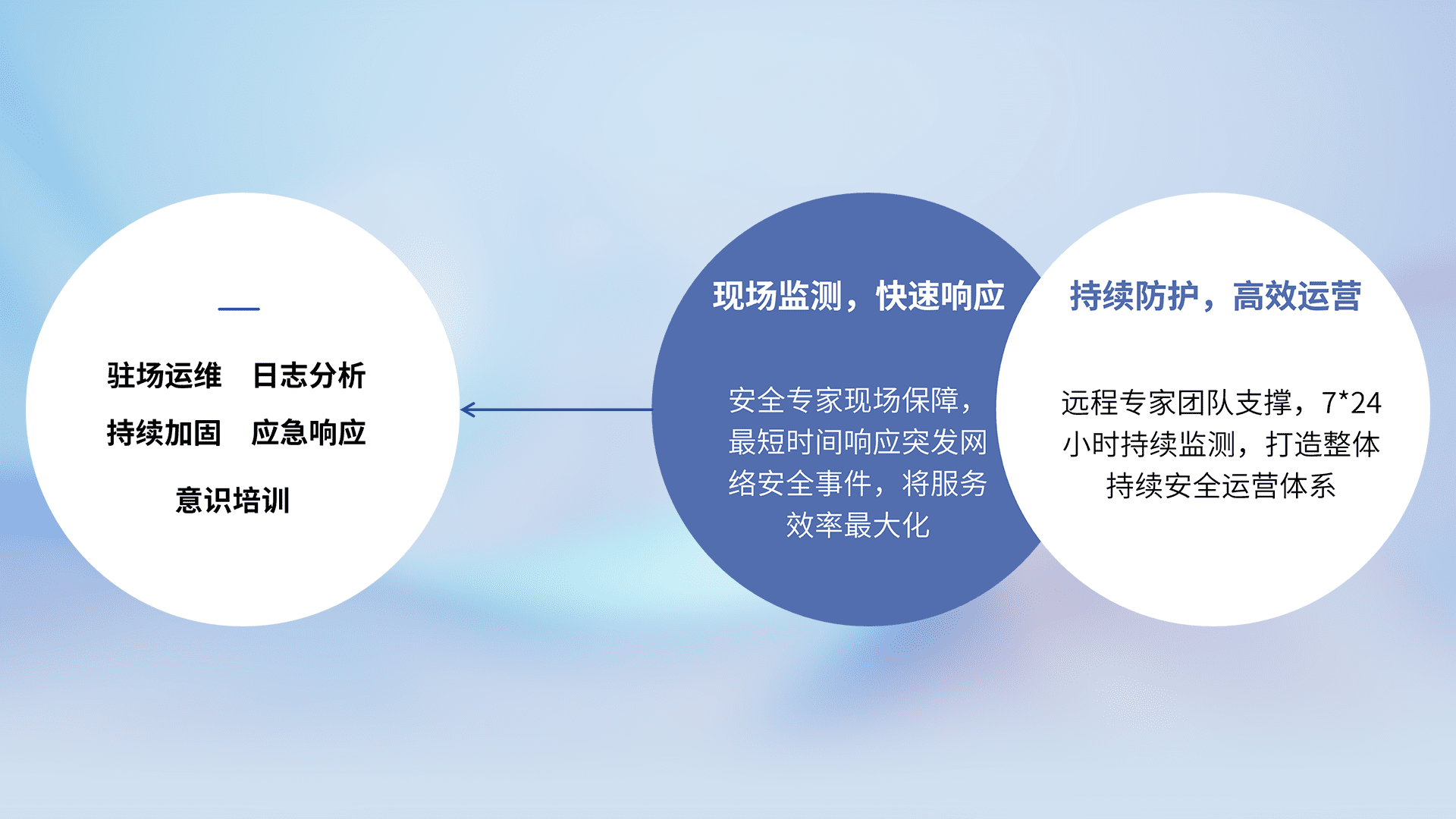 针对客户行业特性,,,,提供专属的一站式安全管理服务,,,帮助客户全面感知网络空间威胁,,通过安全专家的线上、、、线下防护支持,,,实现风险闭环,,将安全保障常态化,,,为客户打造常态化安全运维运营服务。。。。