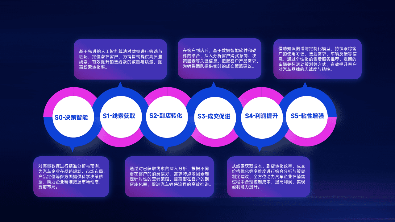 通过拓宽潜在客户来源、、、、优化线索分配并提高到店转化率,,,以增强销售效率。。。。同时,,,利用线索数据不断优化分析模型,,有效提升转化率,,,,扩大营销影响力。。